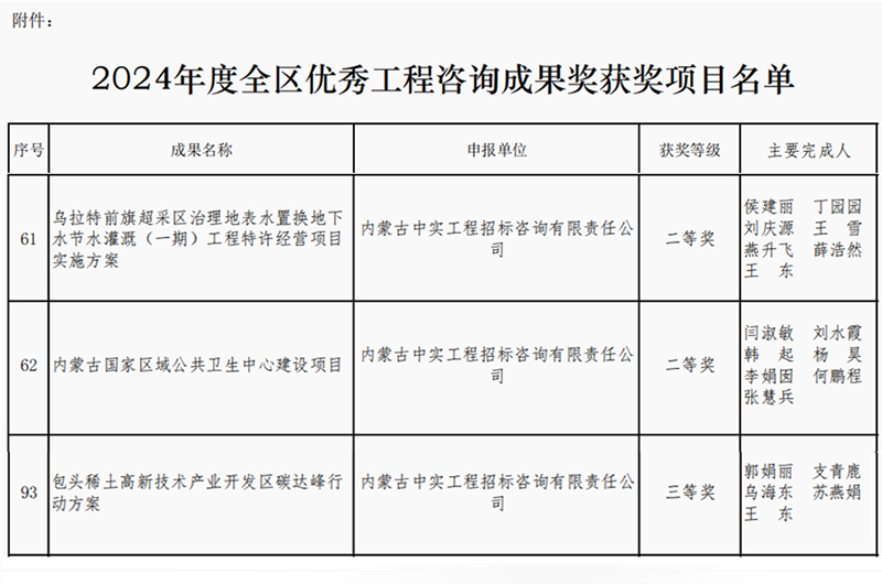 2025-04-168549 次2025年4月16日,内蒙古工程咨询协会公布了2024年度优秀咨询成果奖获奖单位名单,我司取得两个二等奖和一个三等奖,我司专业能力和服务质量再次获得行业的认可。此次获奖,不仅体…
